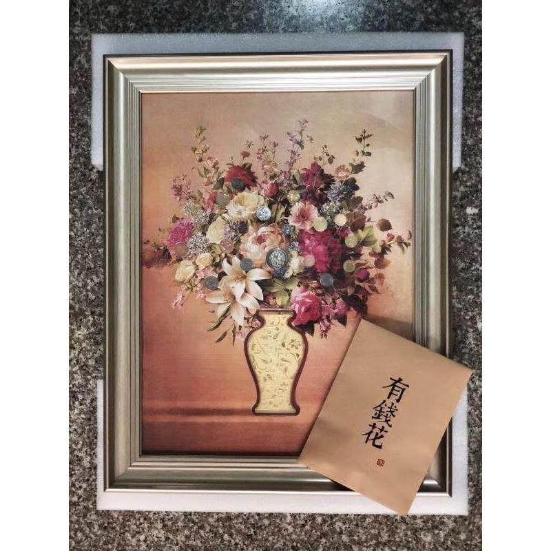 有钱花挂画聚财金瓶19枚世界花卉钱币精选壁画含10克纯银足金花瓶