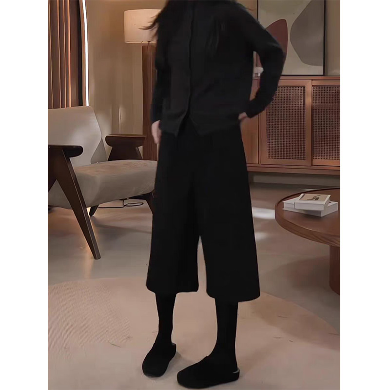 羊毛呢七分西装休闲裤女2025秋冬新款高腰显瘦百搭小个子阔腿裤子