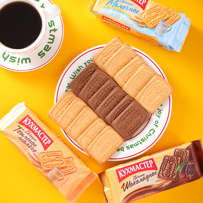 俄罗斯早餐饼干原装进口特浓牛奶巧克力味微甜脆酥零食