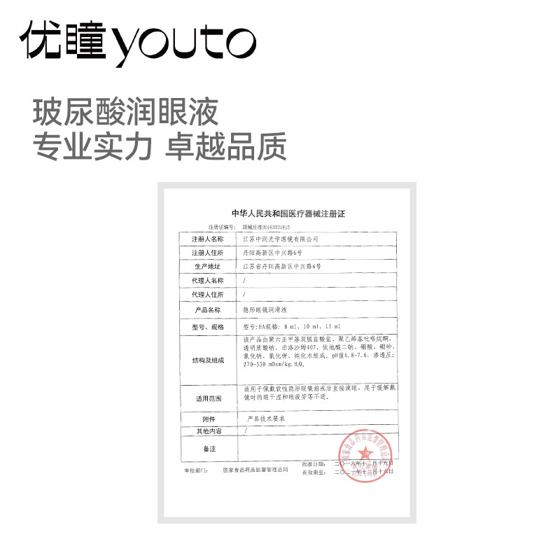 【U先】优瞳玻尿酸润眼液10ML隐形近视眼镜美瞳清洗润滑液正品