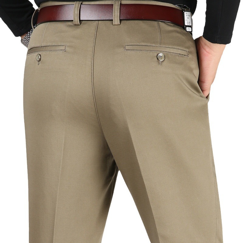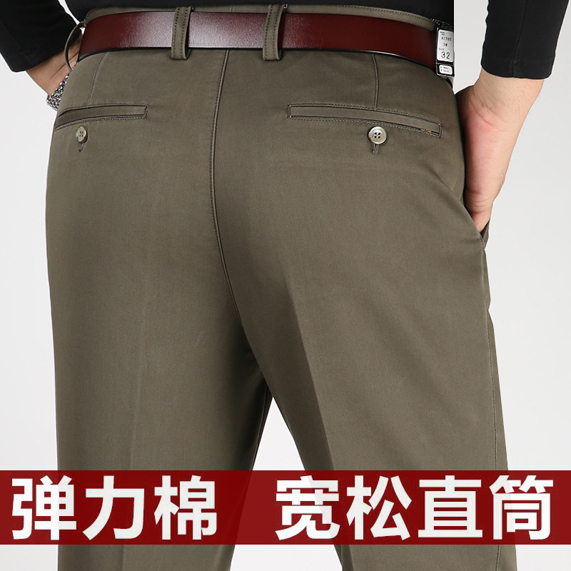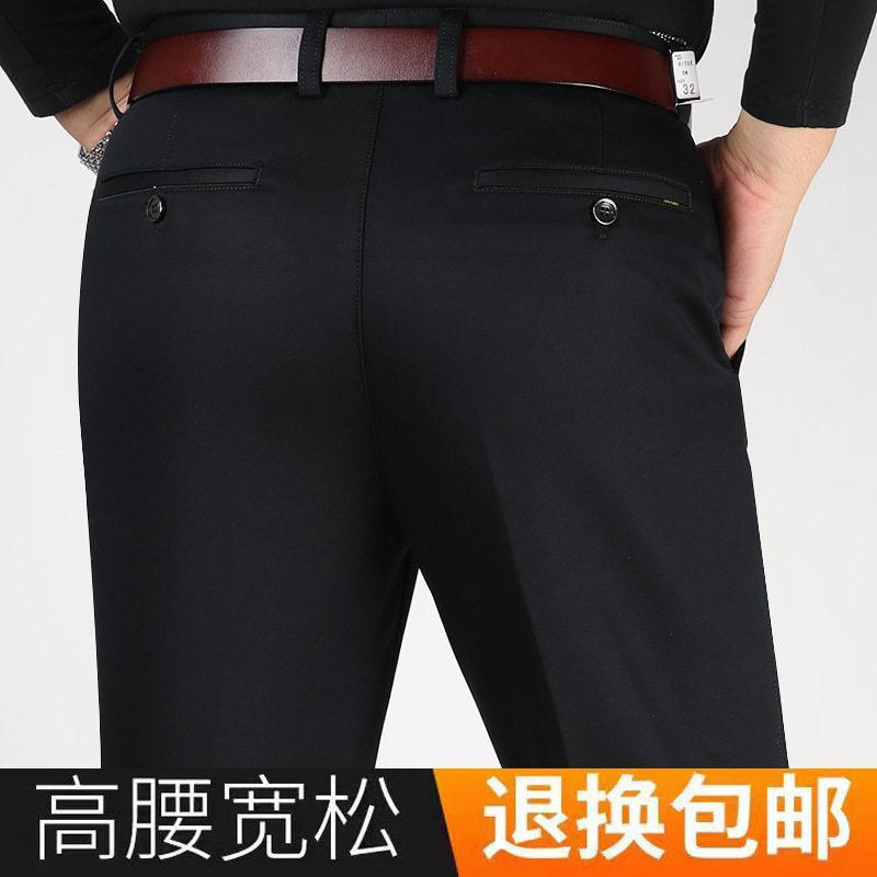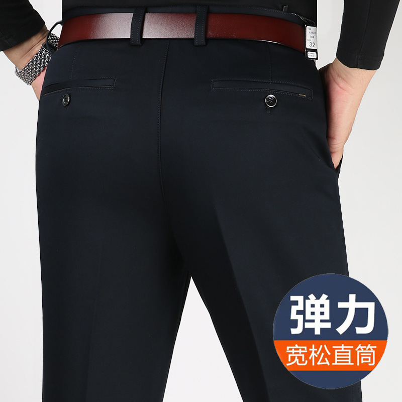 啄木鸟秋冬厚款中年宽松商务休闲裤男高腰直筒爸爸男裤弹力免烫