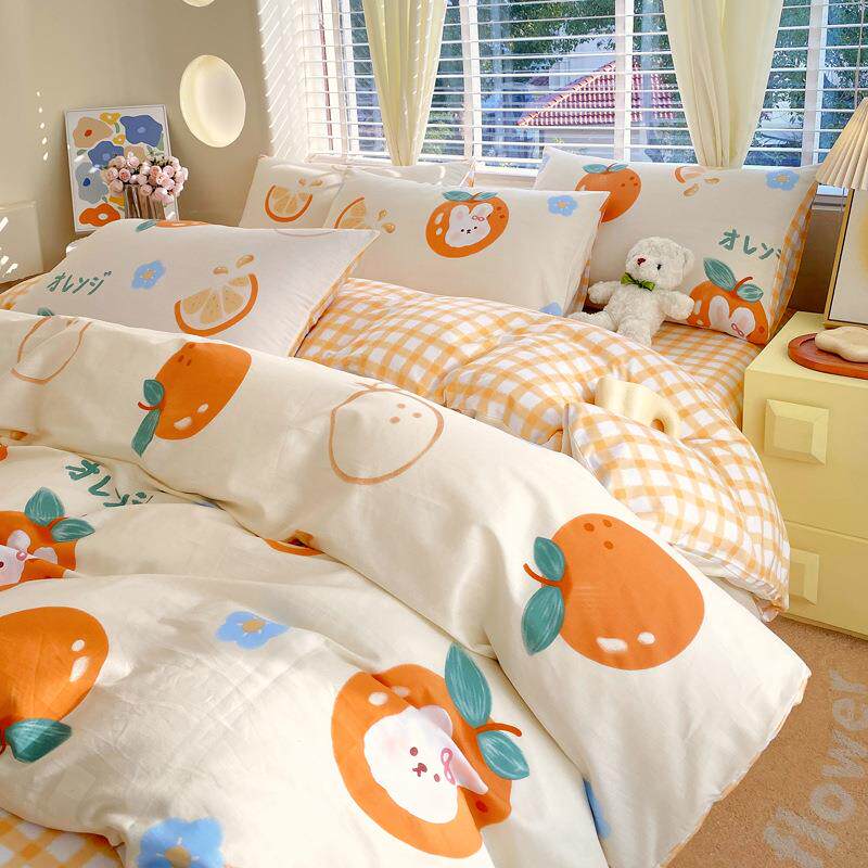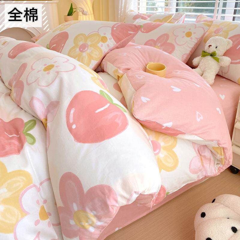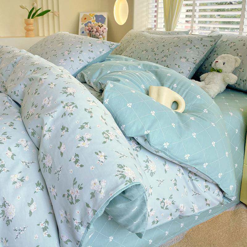 全棉四件套单纯k36893棉套被斜纹罩加厚单被单件双人小清新床笠款