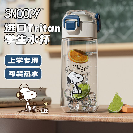 史努比儿童塑料水杯夏季tritan材质耐高温女学生上学专用防摔杯子