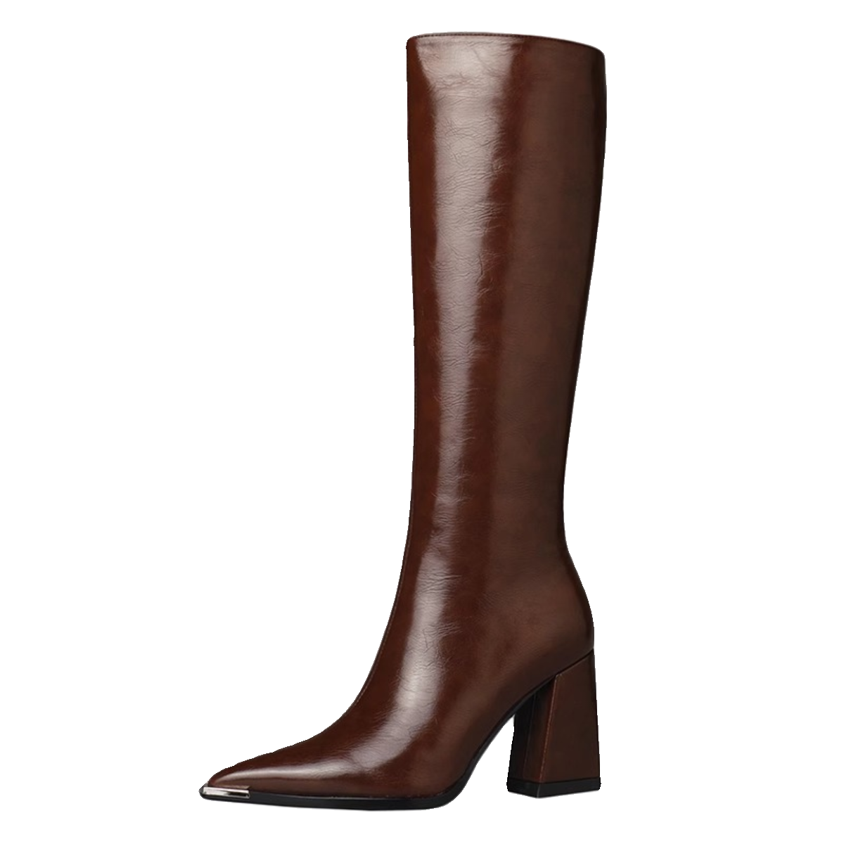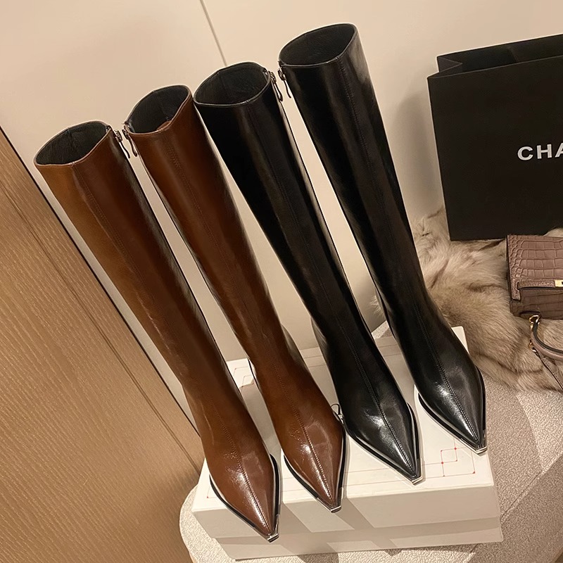 2025年秋冬季新款欧美风长筒靴子尖头粗跟高跟骑士靴高筒靴女加绒