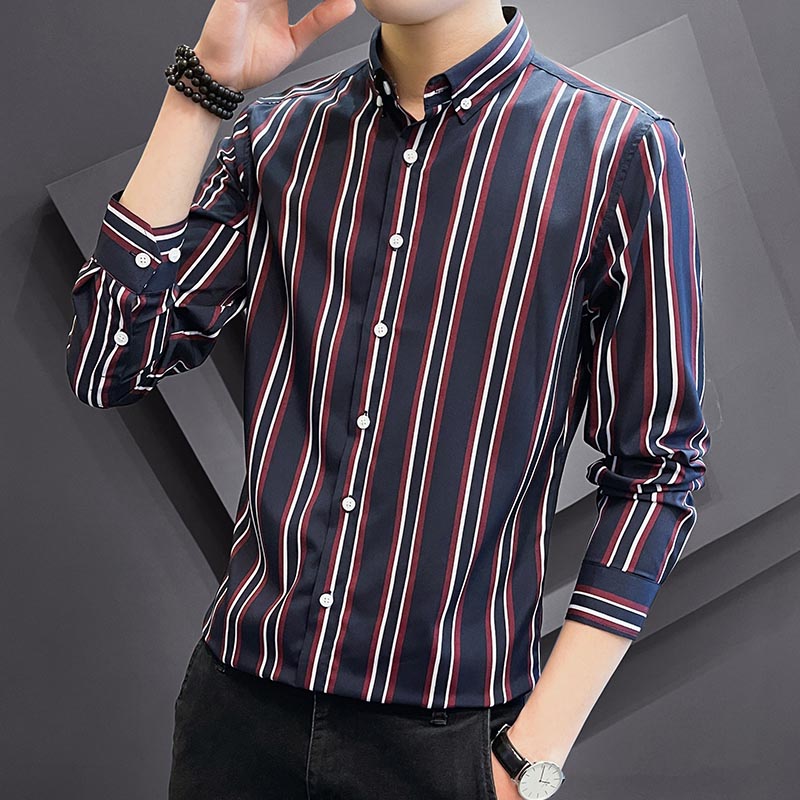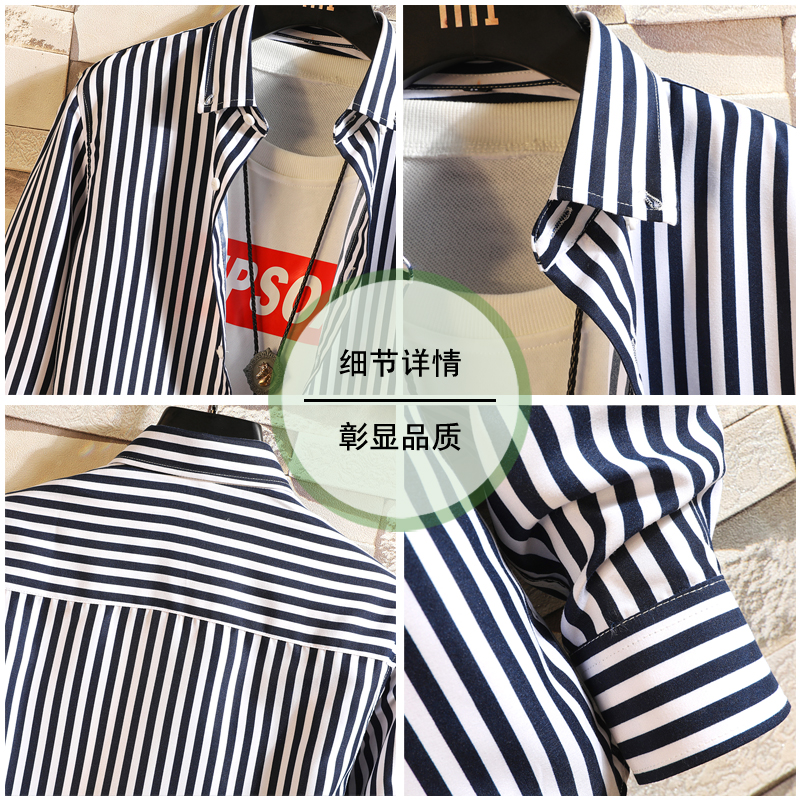 休闲衬衣男士寸衫韩版修身竖条纹冰丝商务正装抗皱长袖西装衬衫潮