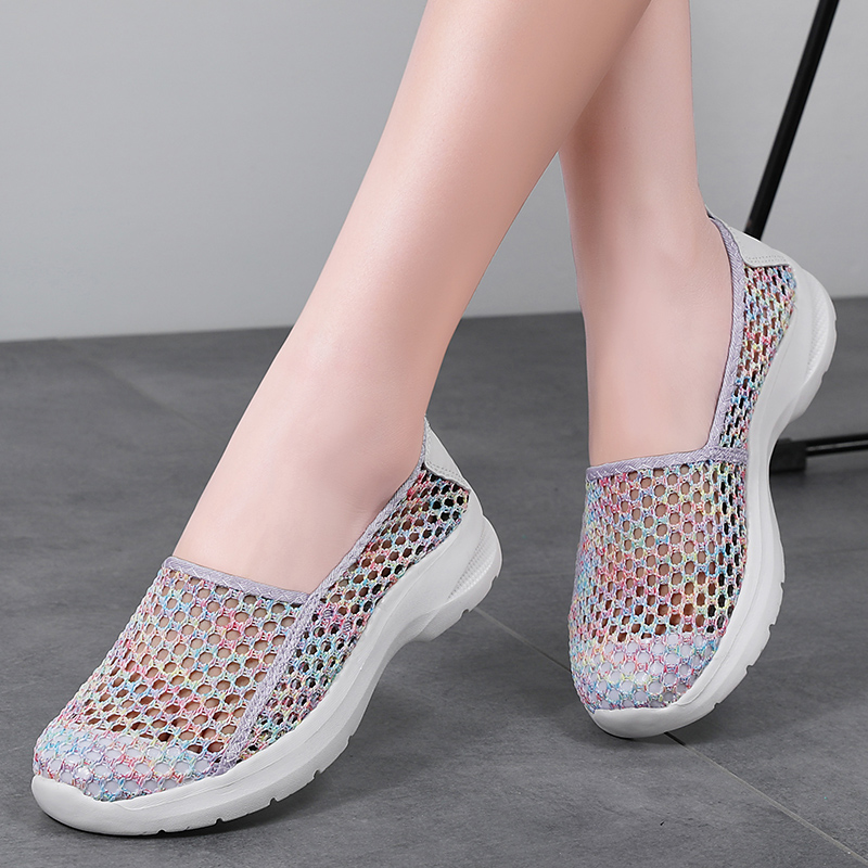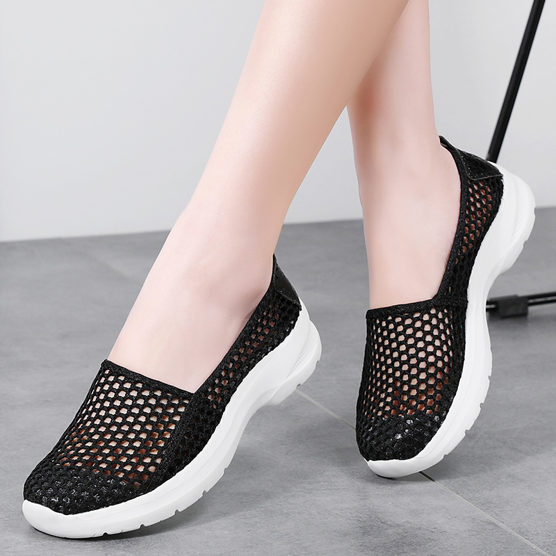网鞋女网面透气薄款大码女鞋2025夏季新款一脚蹬中老年妈妈运动鞋