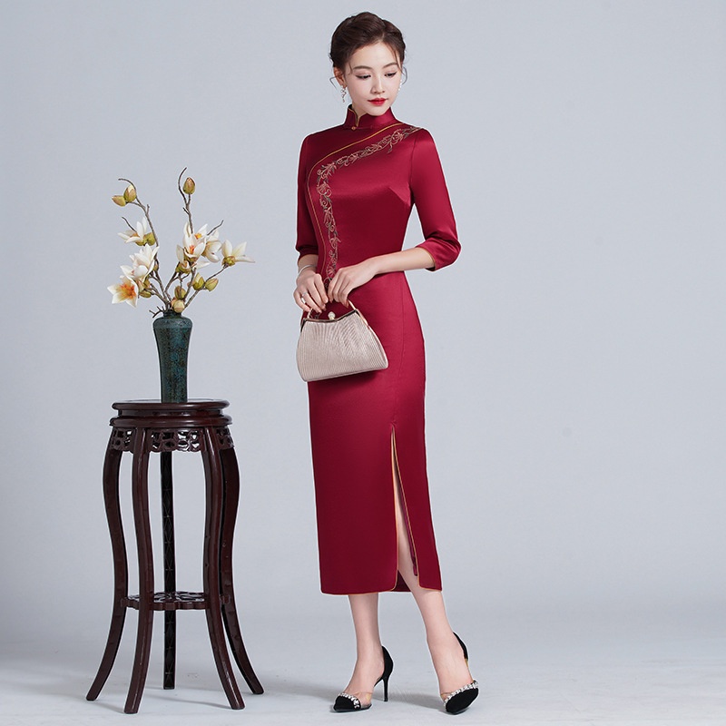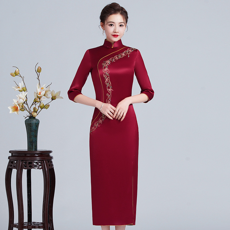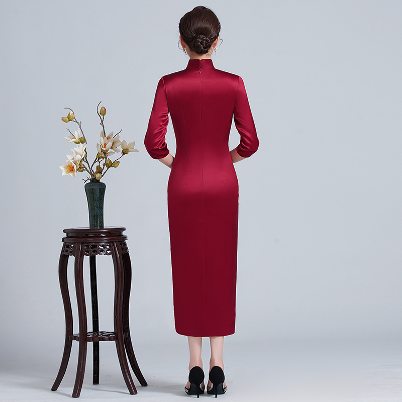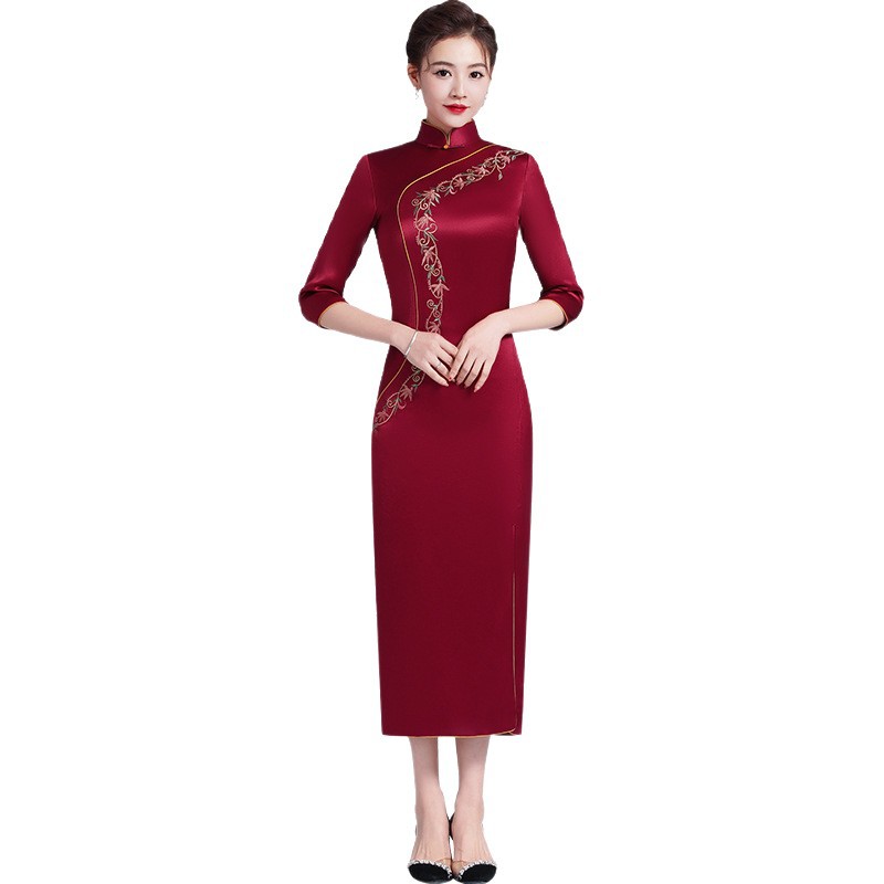 妈妈礼服高贵洋气连衣裙高端喜婆婆婚宴装改良修身旗袍春季优雅