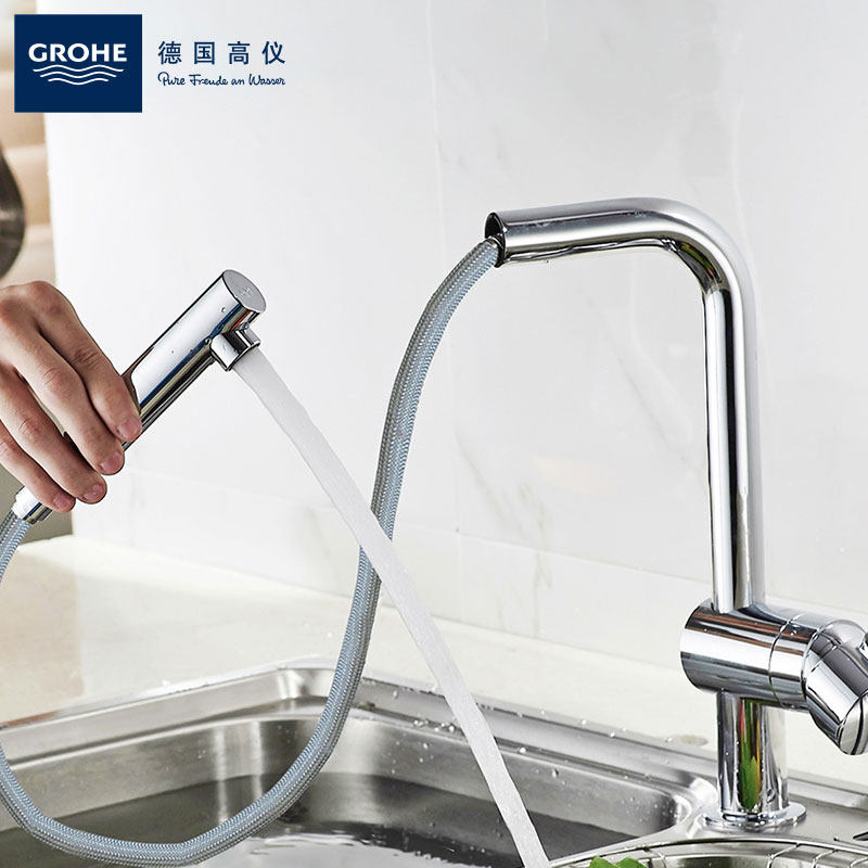 高仪进口304食品级不锈钢水槽厨房抽拉龙头小户型单槽组合套装