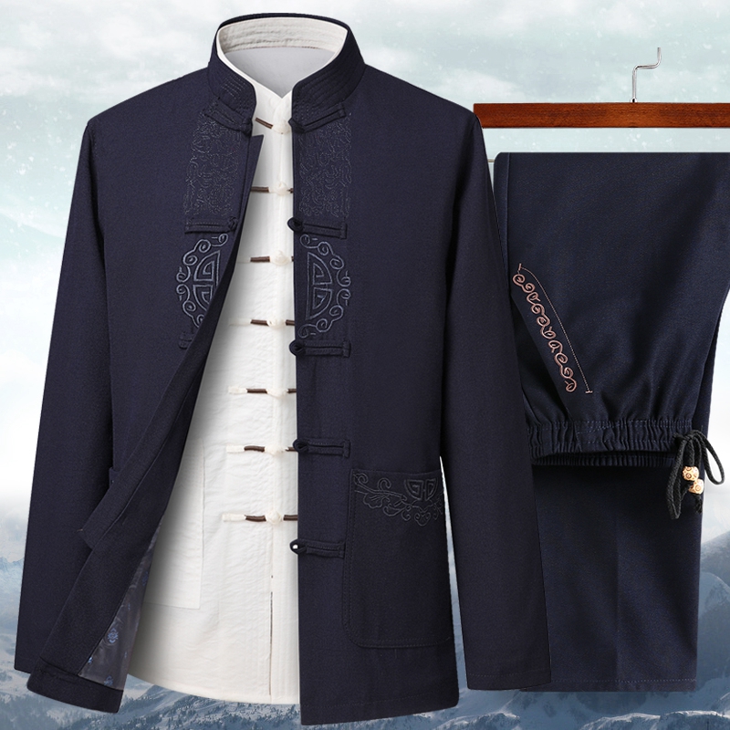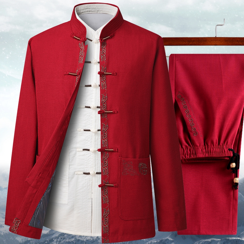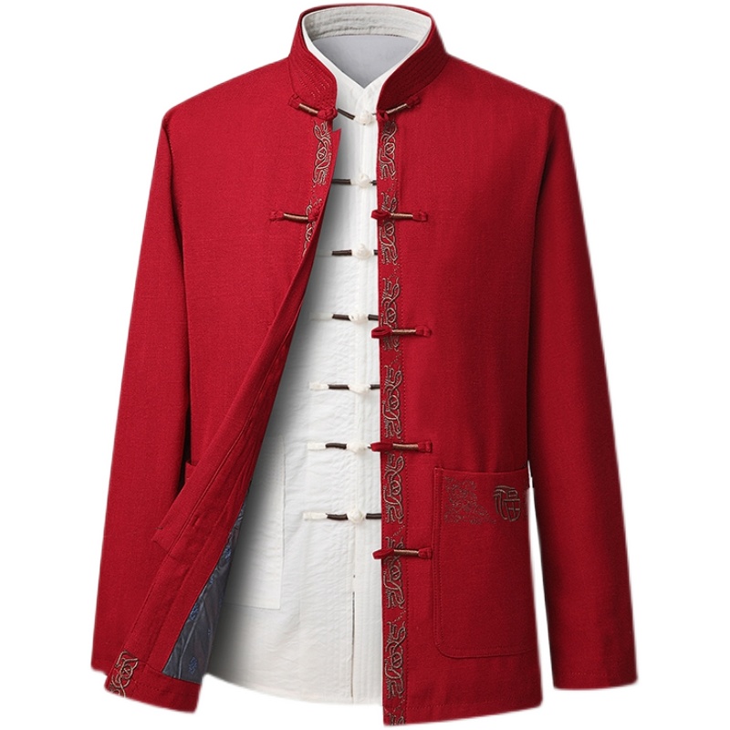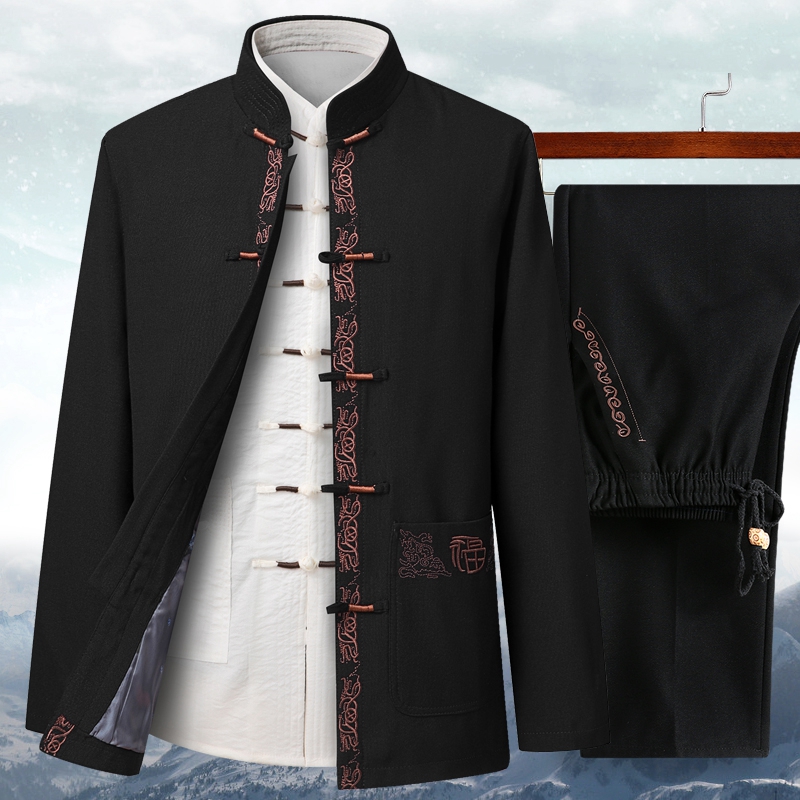 唐装夹克男中老年春秋中式立领刺绣外套爷爷祝寿套装中山装中国风