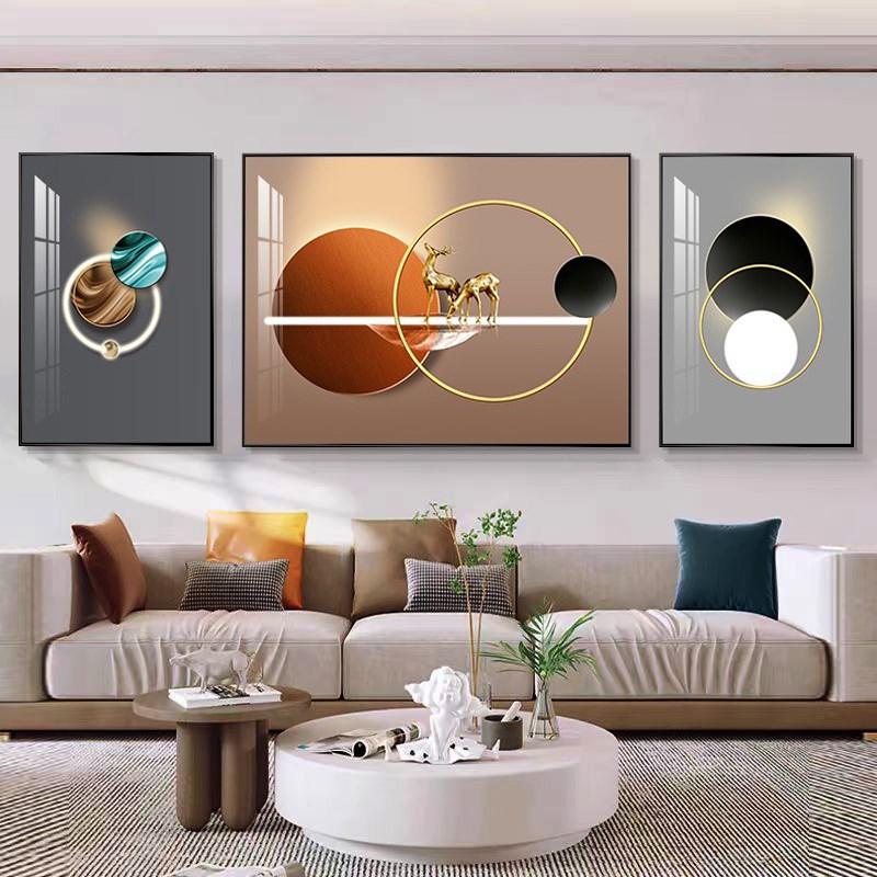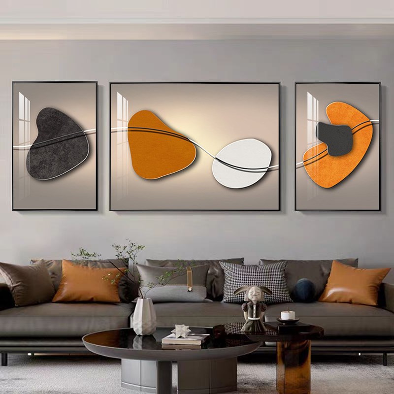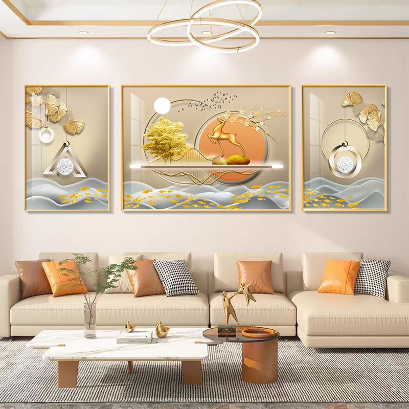 轻奢沙发背景墙挂画高档大气墙画三联画现代简约客厅Y装饰画壁画