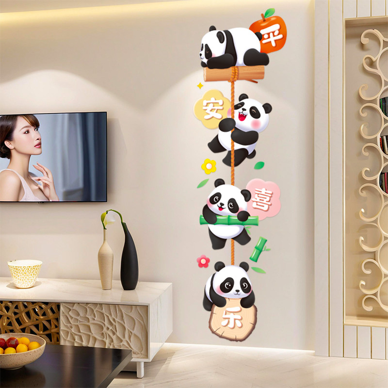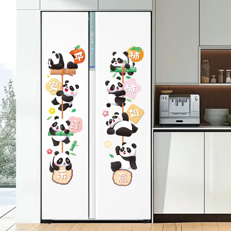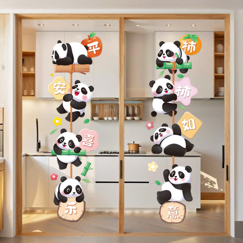 大熊猫静电贴纸推拉门可爱静电贴纸平安喜乐冰箱厨房玻璃装饰墙贴