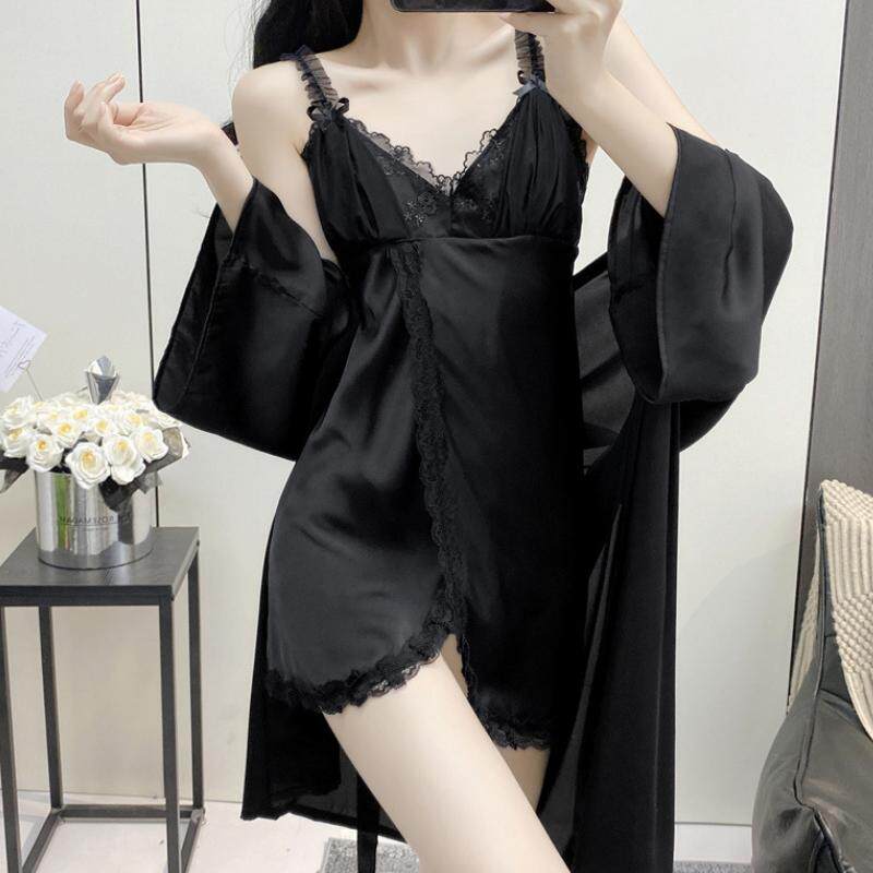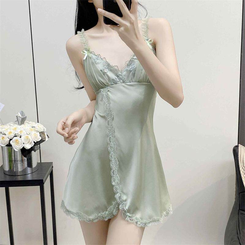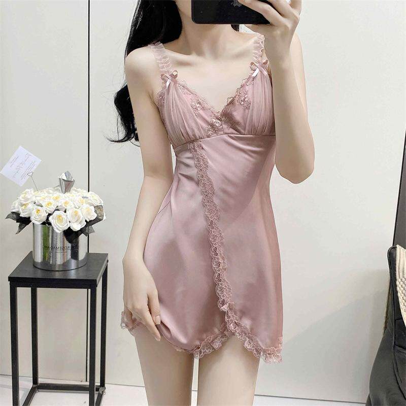 带胸垫新款高定性感蕾丝薄款吊带睡裙纯欲风冰丝家居服套装