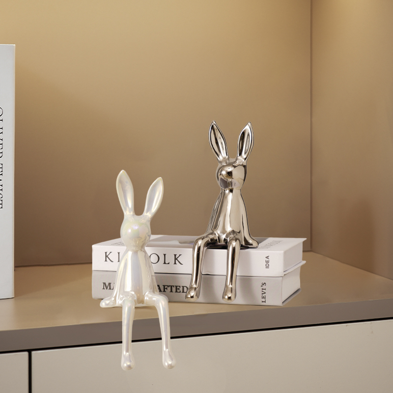 现代轻奢电镀银兔子摆件玄关酒柜电视柜客厅家居隔断房间软装饰品