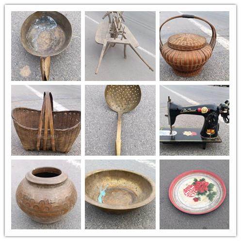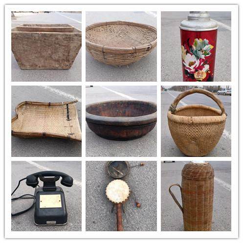 民俗老物件收藏怀旧杂项木叉脸盆收音机箩筐码头等古董老东西摆件