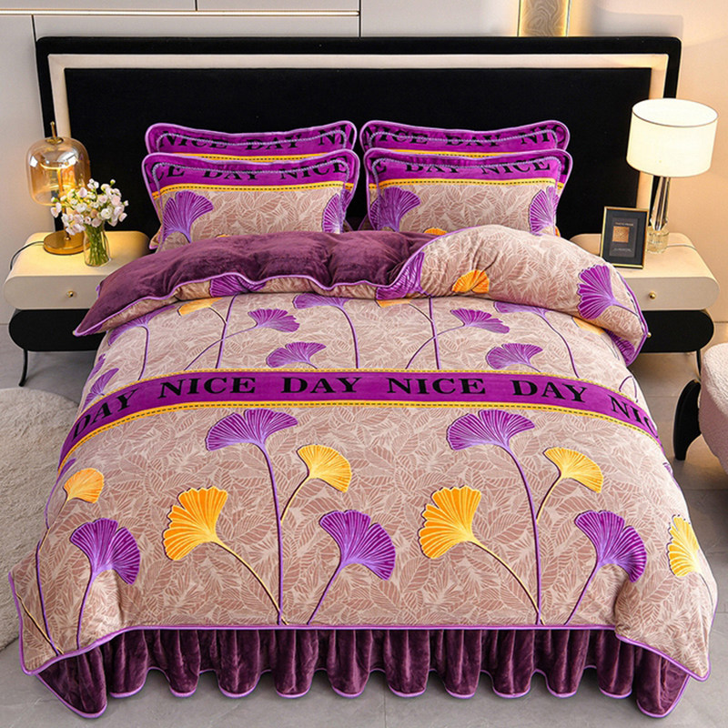 2025新款牛奶金貂绒四件套双面绒被套珊瑚绒秋冬加厚床裙三件套