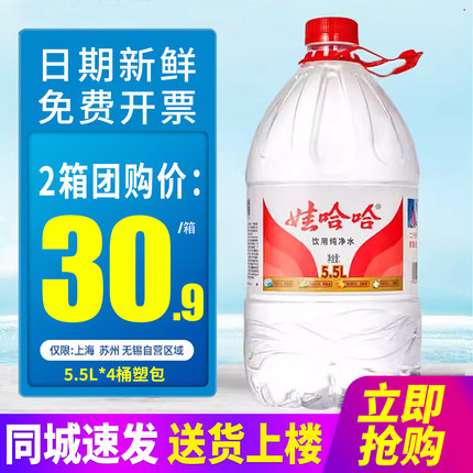 百亿补贴娃哈哈饮用纯净水5.5L*4桶整箱大桶装泡茶水非矿泉水包邮