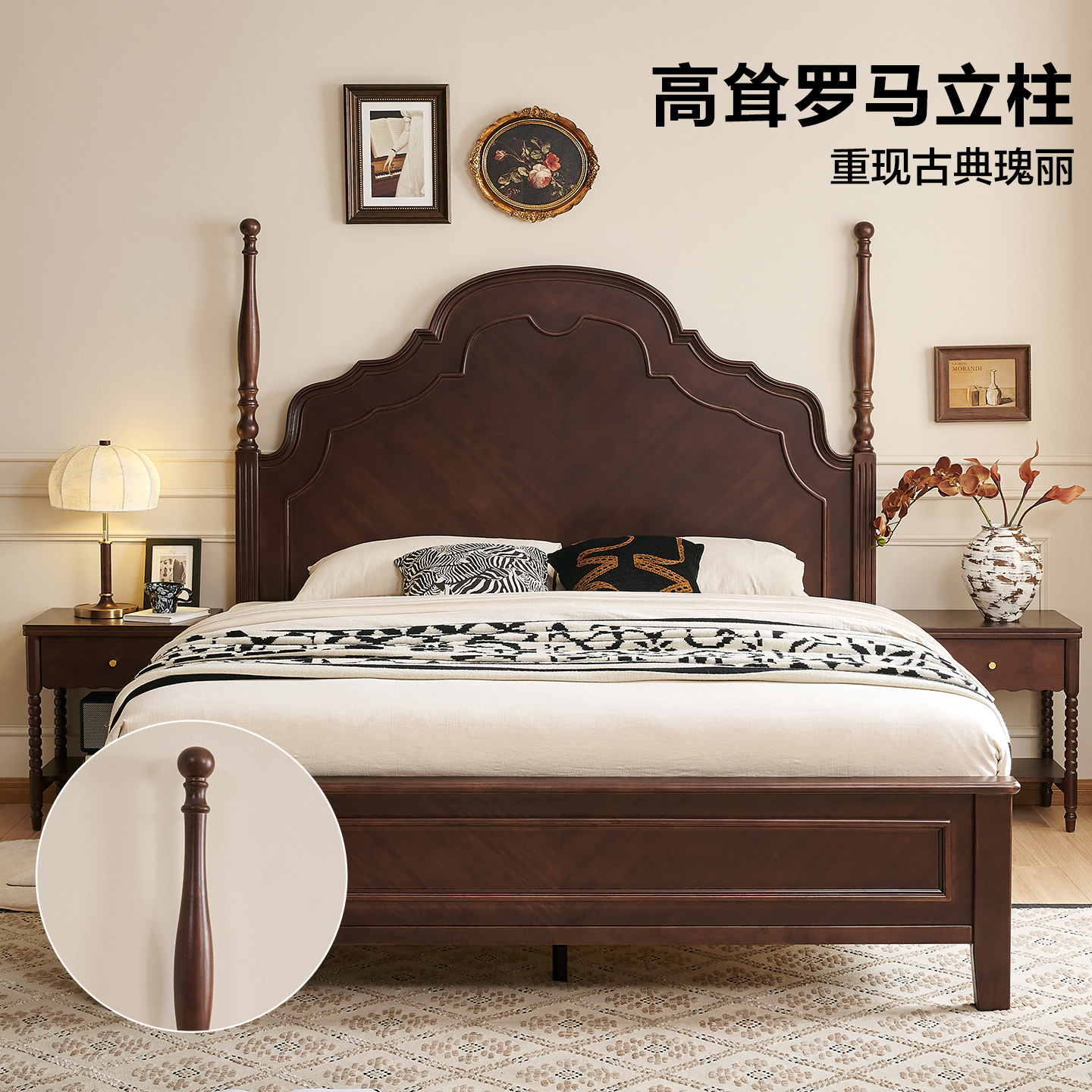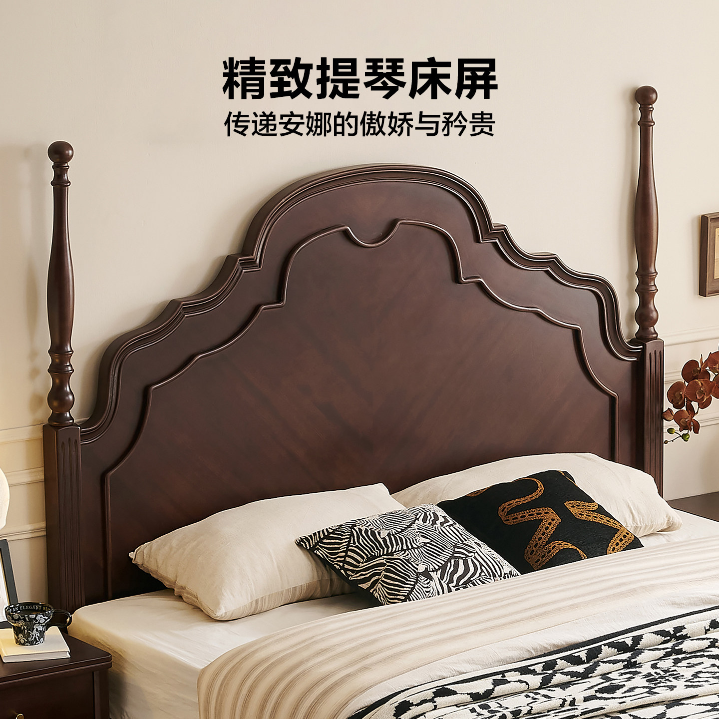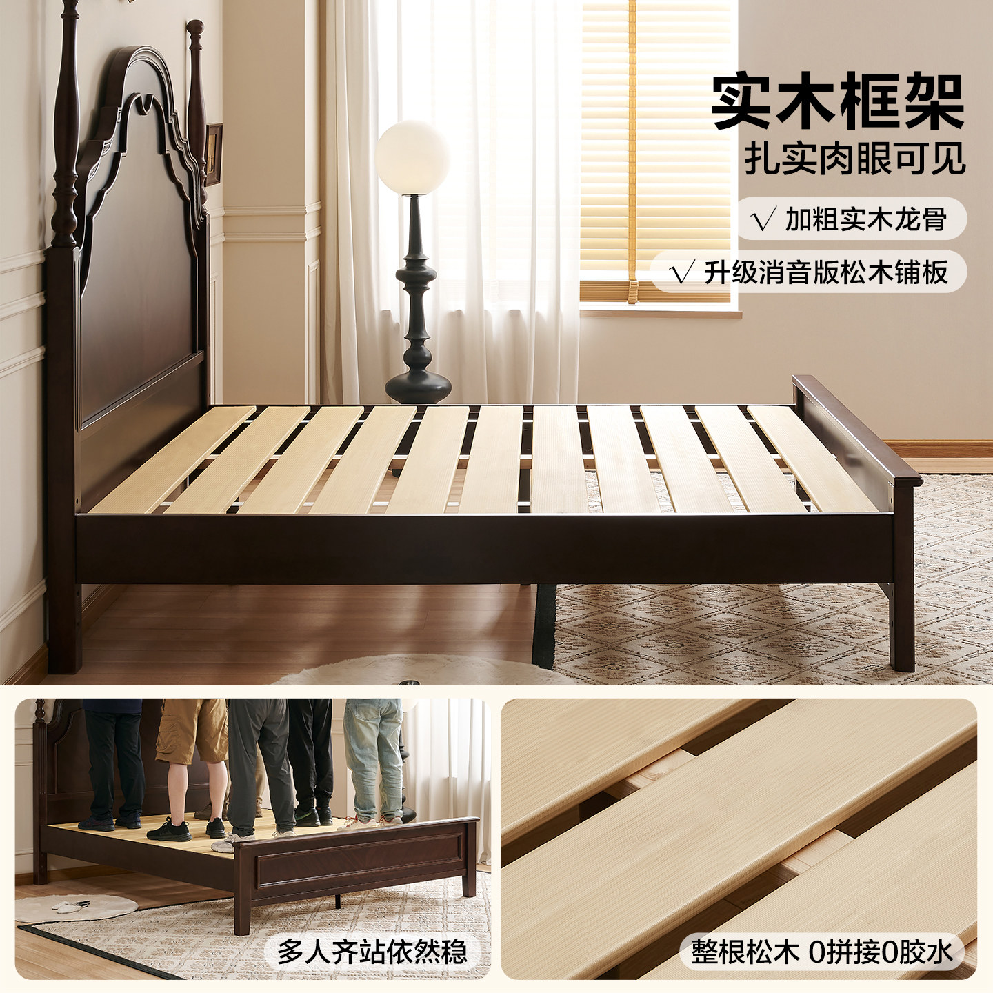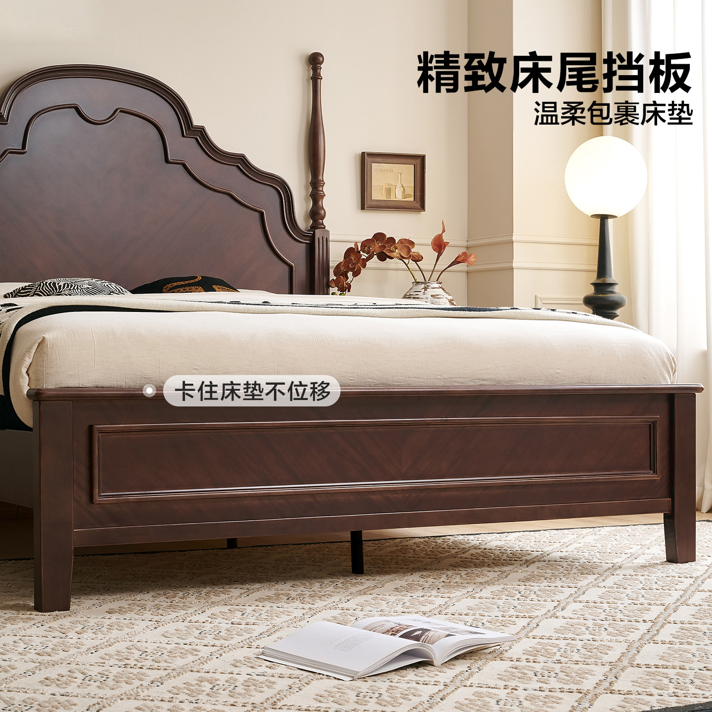 全友家居美式复古风1米8双人床家用卧室1.5米公主女孩单人实木床