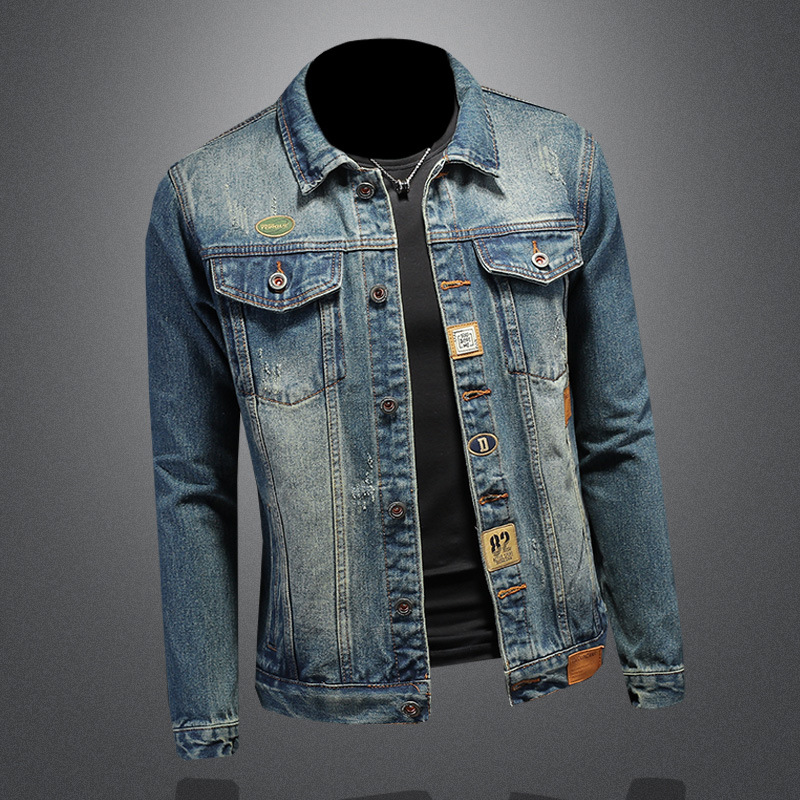 堡狮龙唯品会正品牌男装北纬30度男士翻领修身水洗牛仔衣潮流夹克