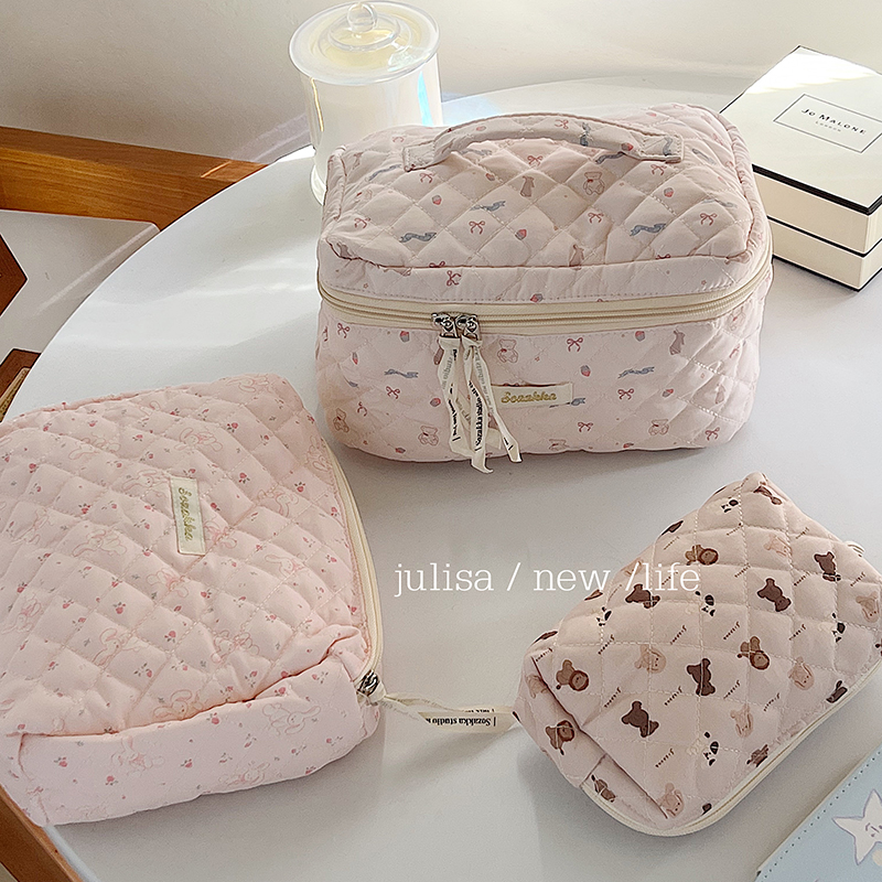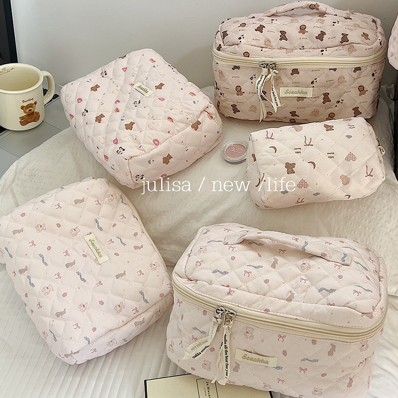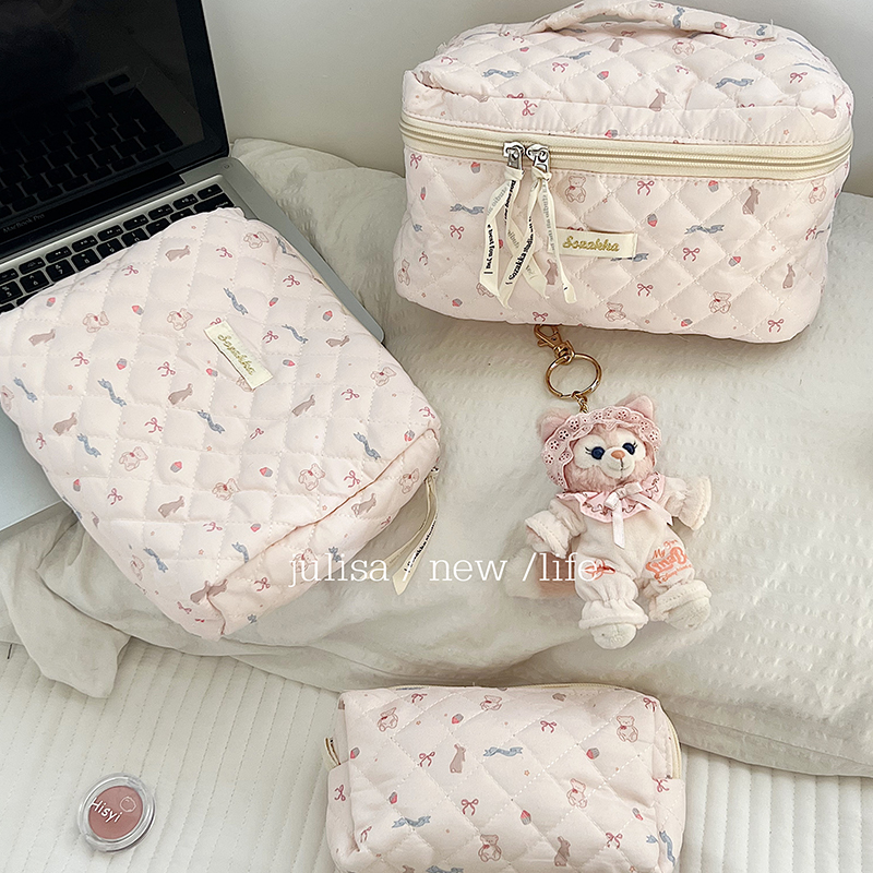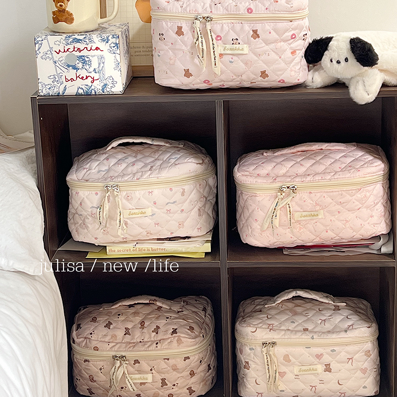 升级款神仙化妆包大容量蓝色小熊旅行便携蝴蝶结洗漱包包学生笔袋
