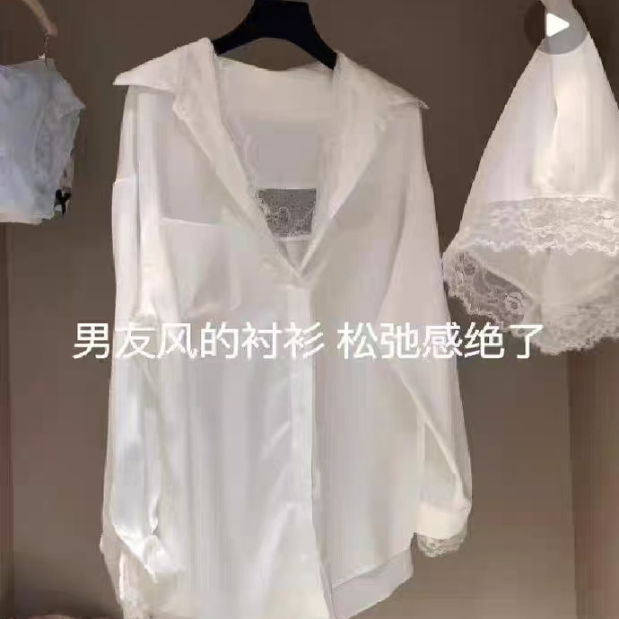 桑蚕丝纯欲宽松衬衫睡衣