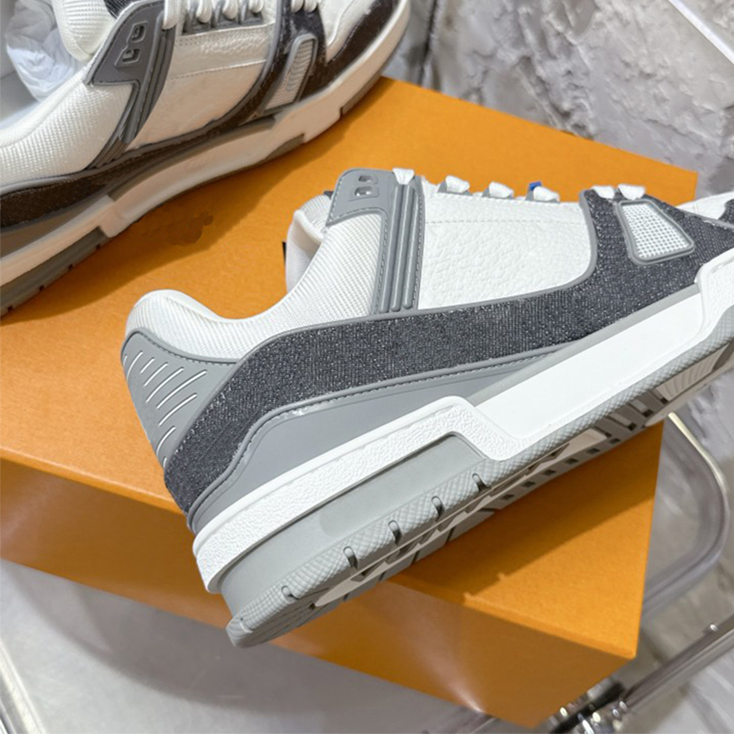 现货高定芯片版厚底白水泥灰运动休闲真皮牛仔布情侣款系带板鞋女