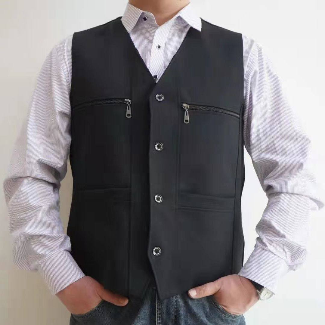 春秋薄款中老年男士单马甲中年休闲背心爸爸老年人西装老人马夹