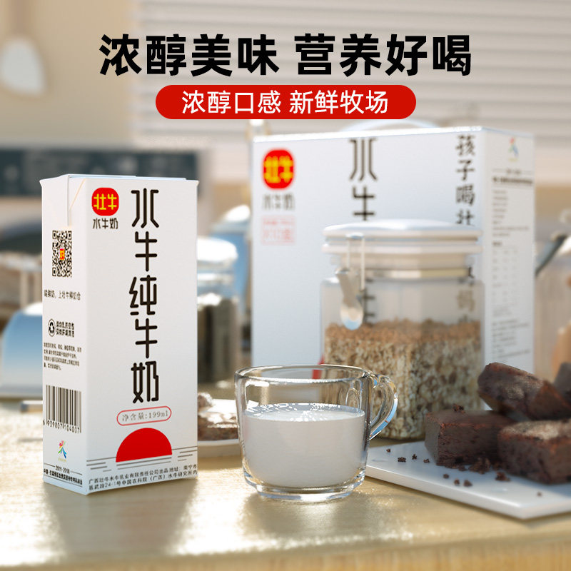 广西壮牛水牛纯牛奶199mlx10盒整箱儿童学生家庭早餐礼盒装送礼