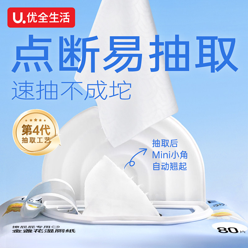 【下拉享优惠】优全生活金盏花湿厕纸M码加厚洁厕巾湿手纸家庭装