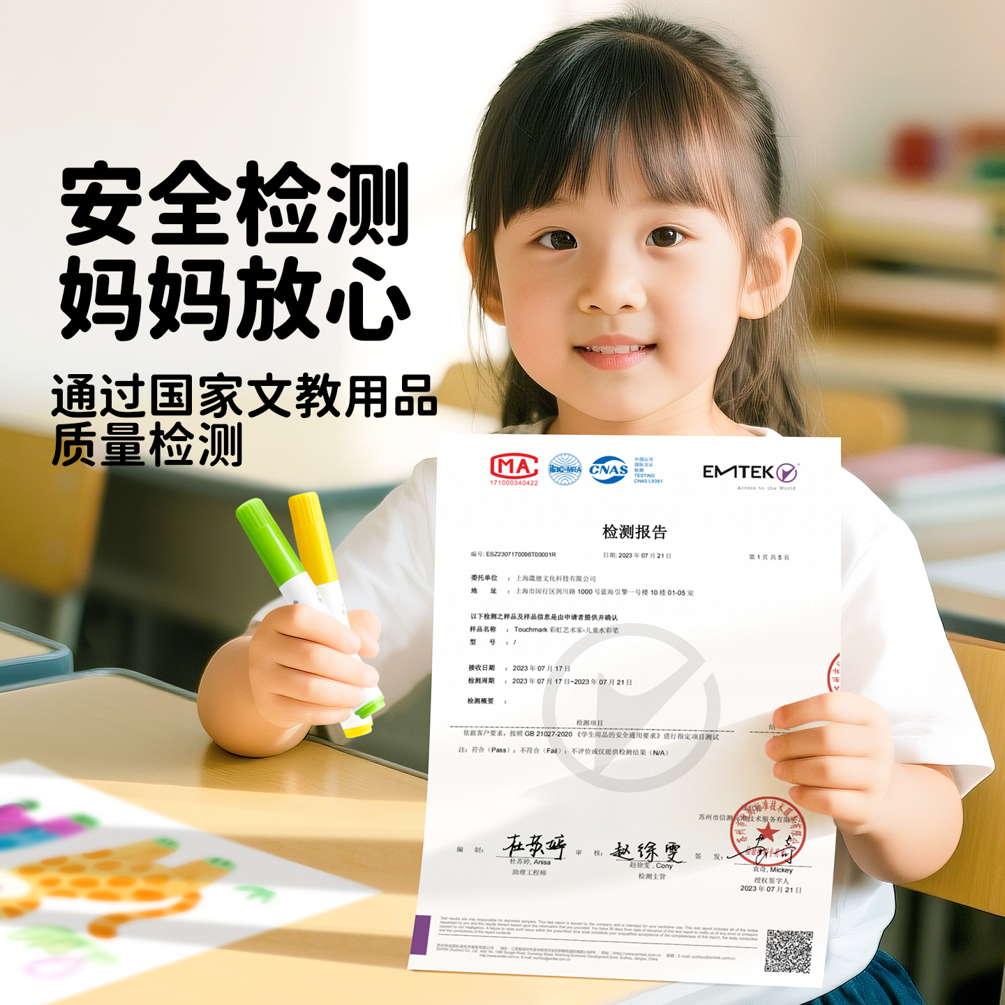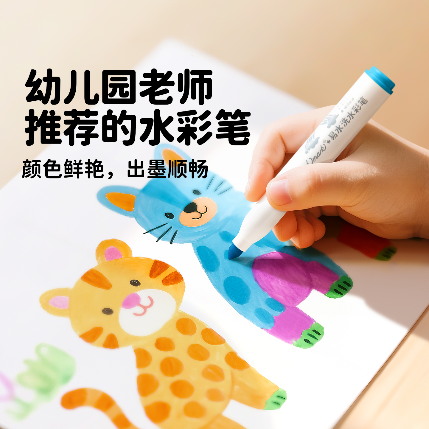Touchmark水彩笔幼儿园专用无毒可水洗24色彩笔宝宝画笔12色粗头不脏手印章彩色笔马克笔小学生专用涂色儿童