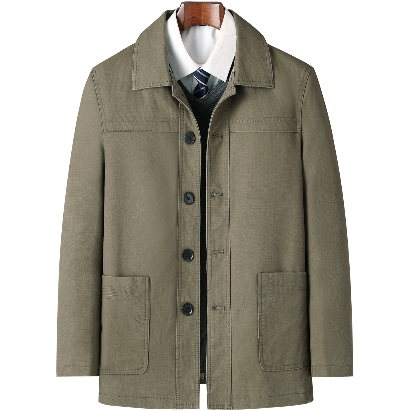 爸爸秋装纯棉外套中老年人男士全棉夹克衫春秋季爷爷男装休闲上衣