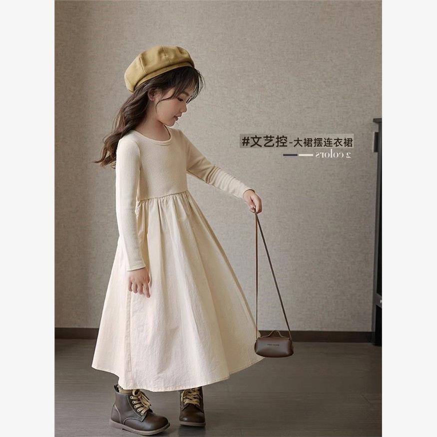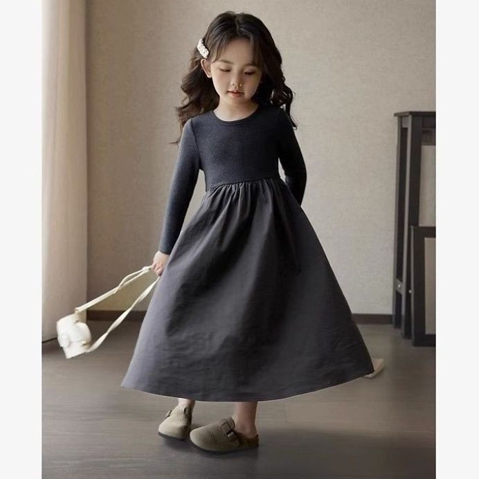 女童连衣裙秋季儿童小黑裙休闲长裙女大童洋气时髦长袖公主裙子
