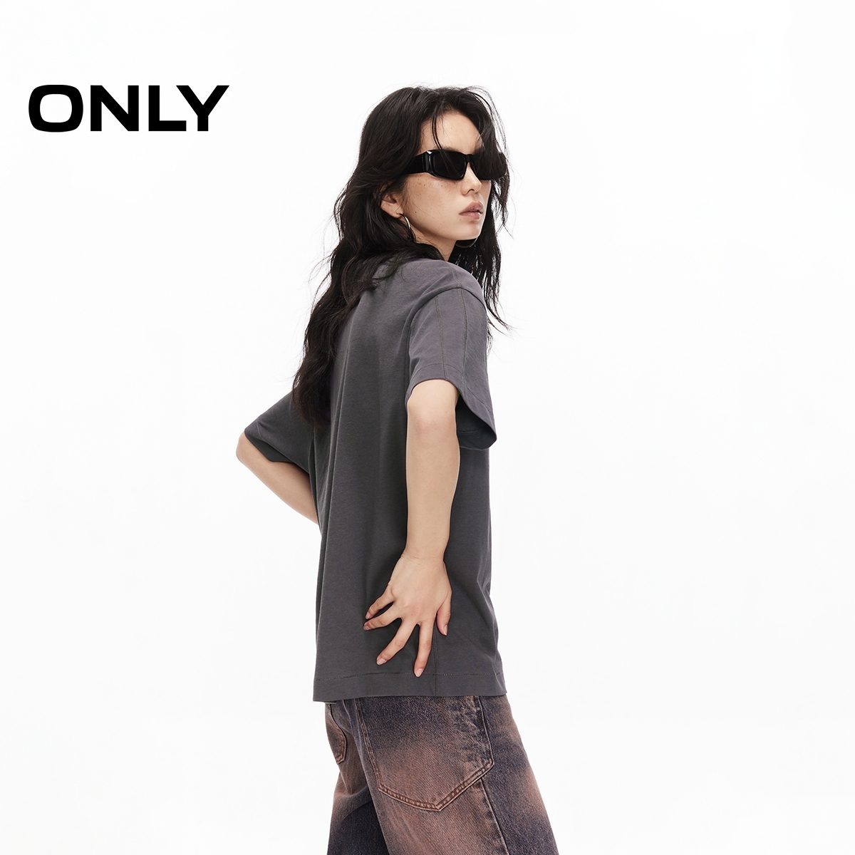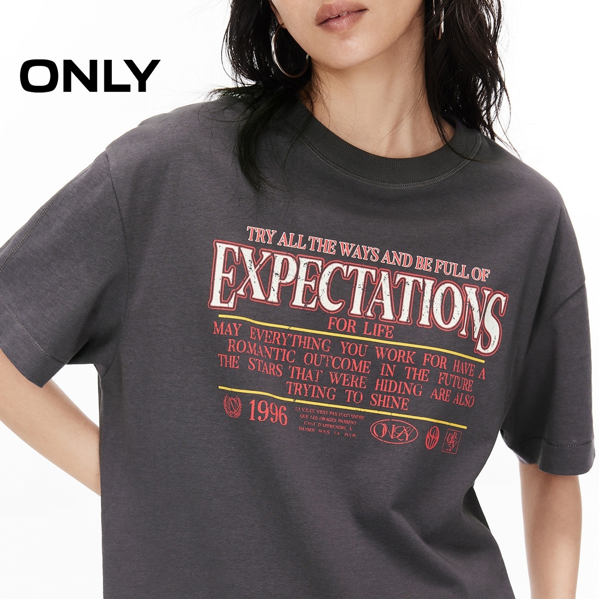 ONLY宽松落肩圆领短袖T恤