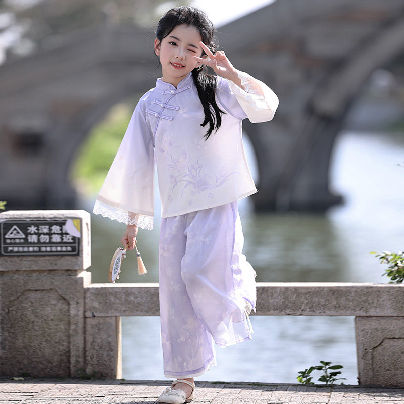 原创汉服女童新中式2025新款春季套装古风民国风演出服儿童唐装夏