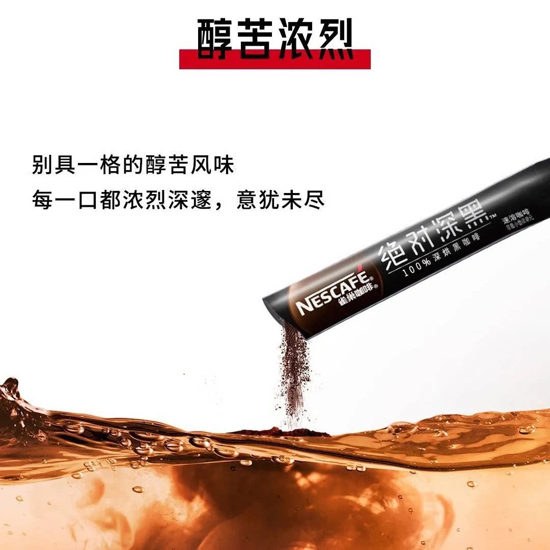 雀巢咖啡绝对深黑美式速溶咖啡深度烘焙醇苦冰美式健身提神8杯起