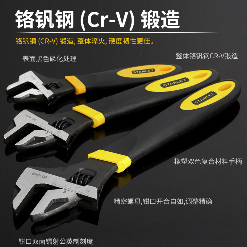 史丹利工具双色柄铬钒钢活口活动扳手万能扳手家用扳手90-947-23
