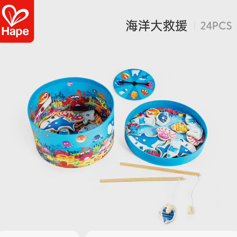Hape海洋大救援桌面磁性钓鱼游戏男女孩礼物2-4岁儿童益智玩具