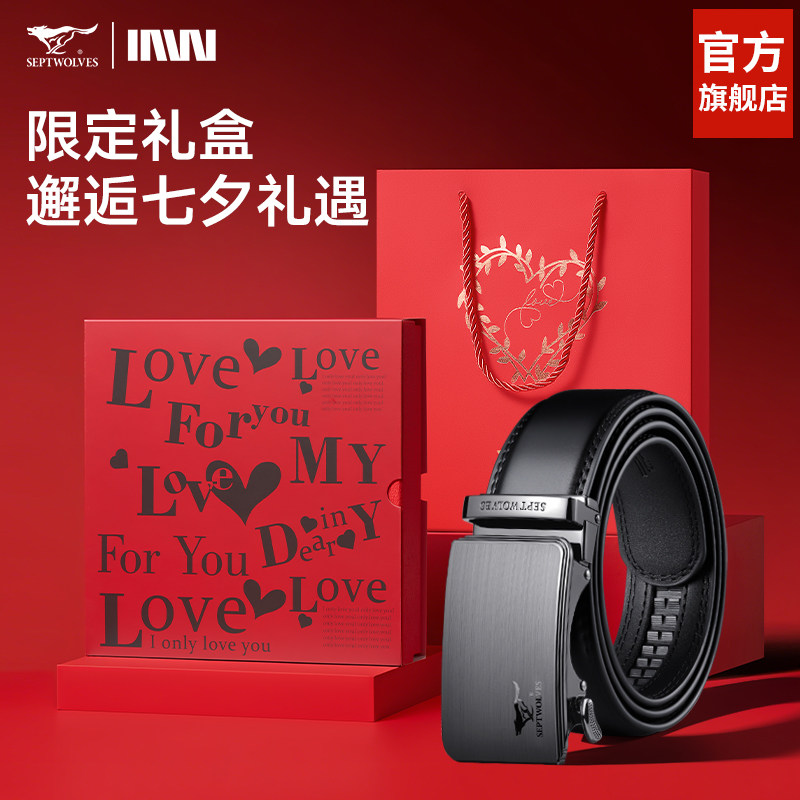 七匹狼男士真皮皮带简约休闲牛皮腰带情人节礼物商务高档品牌裤带