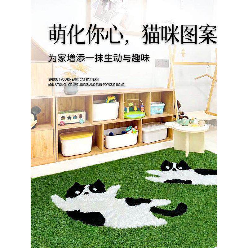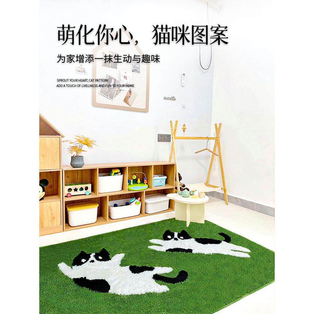 绿色地毯猫旅行卧室床边毯子客厅咖啡桌民宿房间地毯家庭现代儿童