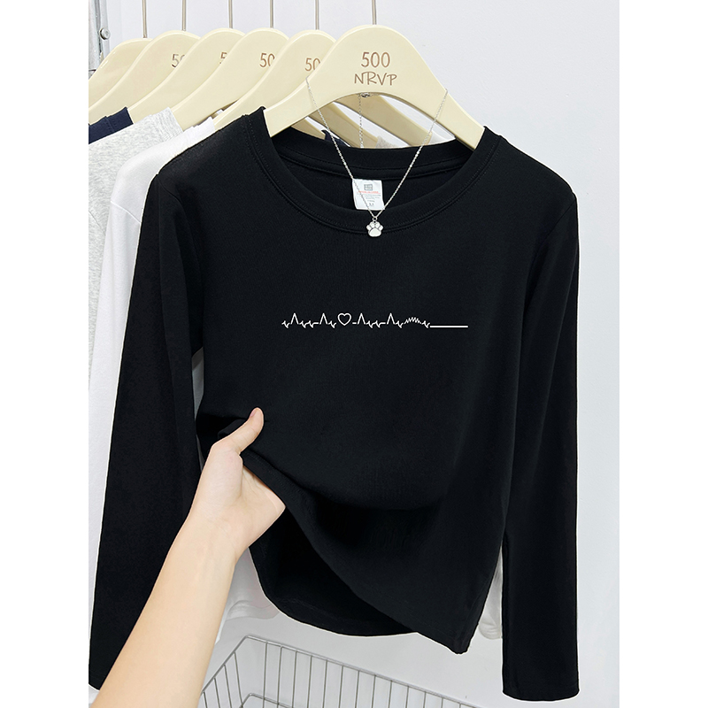 韩系显白简约字母正肩长袖t恤女修身秋冬胖mm大码女装弹力上衣ins
