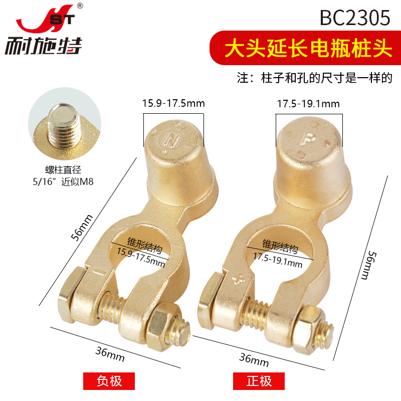 NST耐施特黄铜电瓶头大电瓶转小电瓶专用蓄电池卡子接线端子连接
