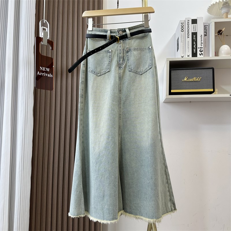 时髦出街~复古毛边牛仔半身裙女春夏中长款高腰A字包臀鱼尾裙子潮
