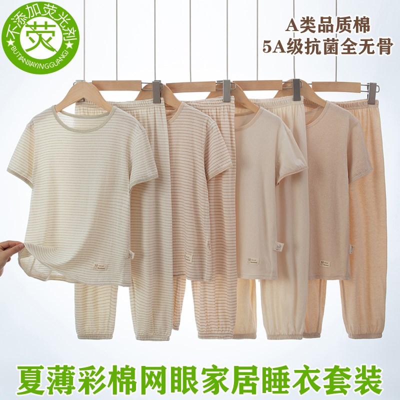 儿童套装中大童睡衣男女童夏季薄款全棉空调服家居服抗菌无痕打底