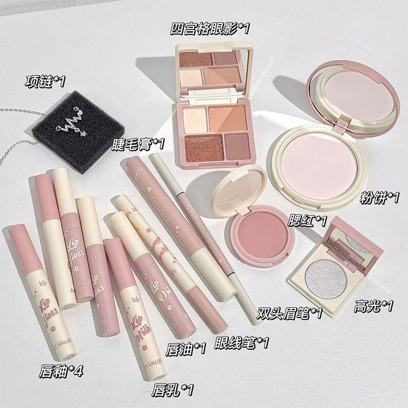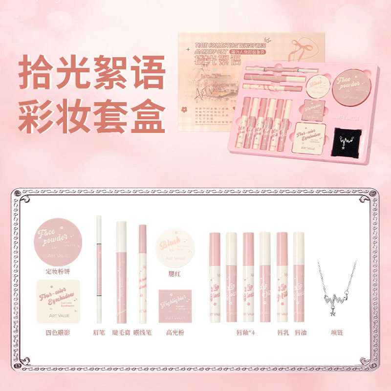 Art Value 拾光絮语彩妆套盒唇釉腮红眼影粉饼通勤简单妆项链套装
