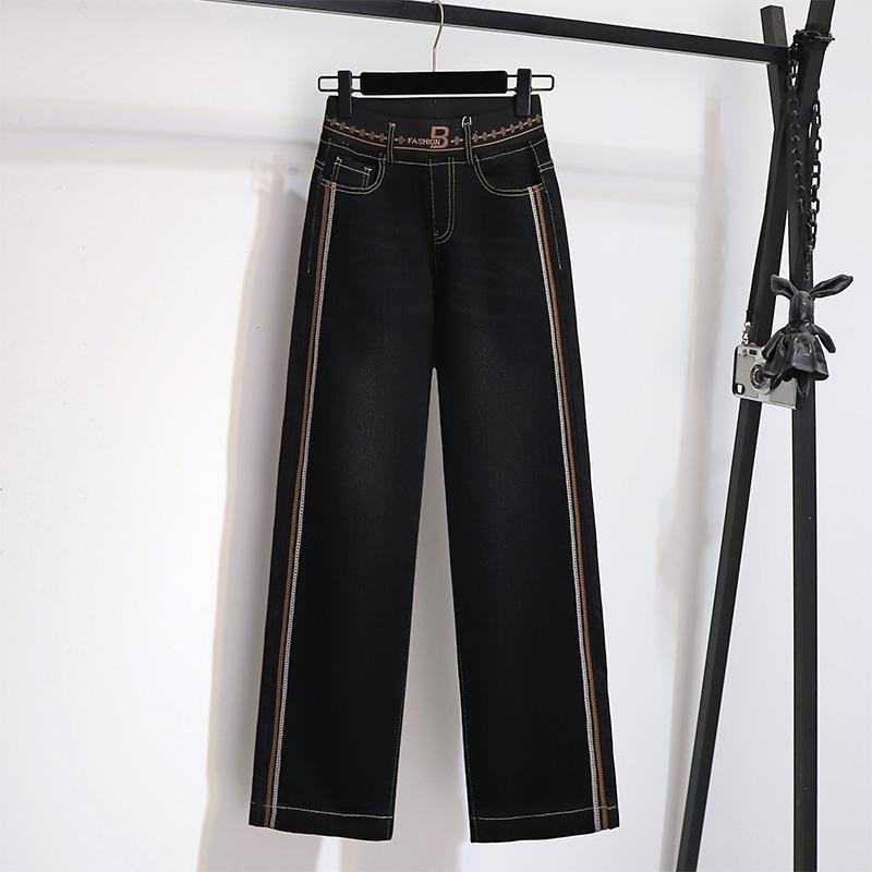 诗蕊尔松紧腰弹力复古阔腿牛仔裤