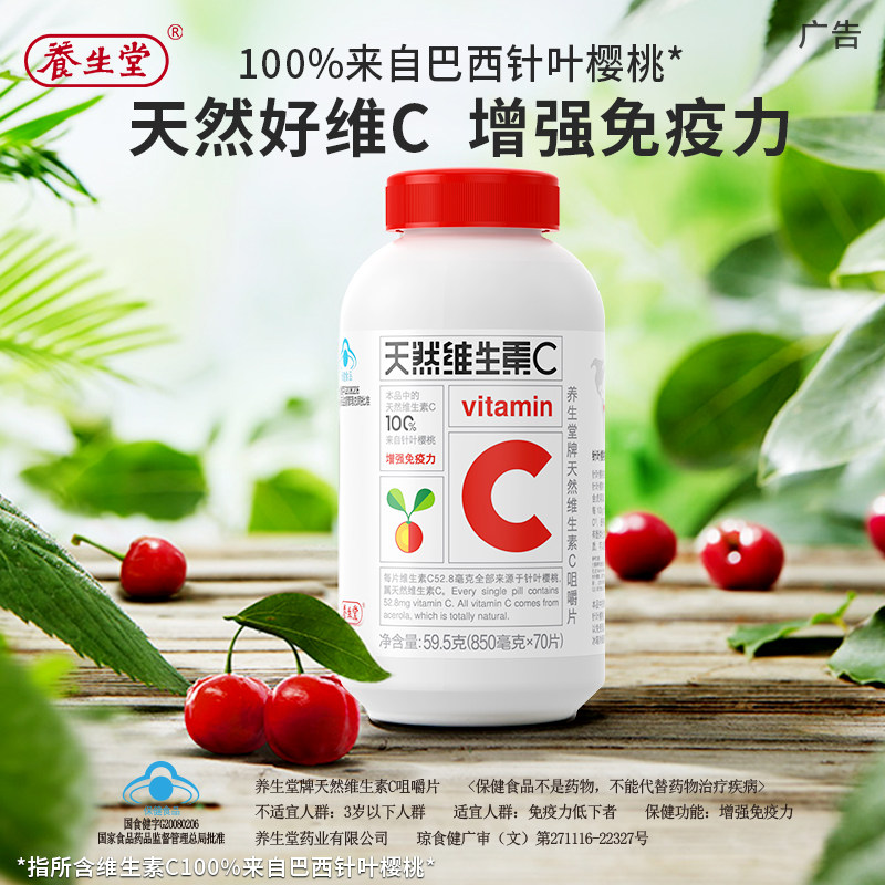 【所有女生直播间】养生堂天然维生素C咀嚼片官方正品VC