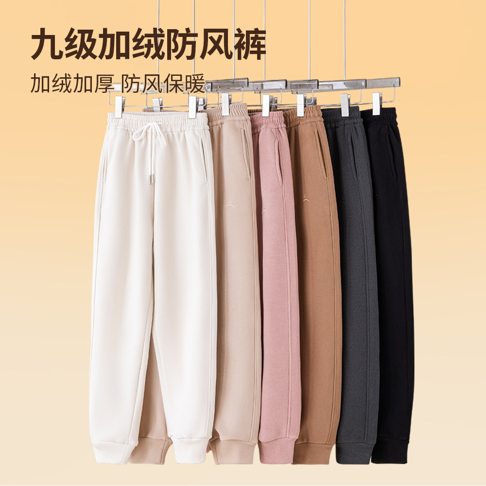 防水防风裤女秋冬季新款宽松加绒休闲裤大码棉裤加厚运动束脚卫裤