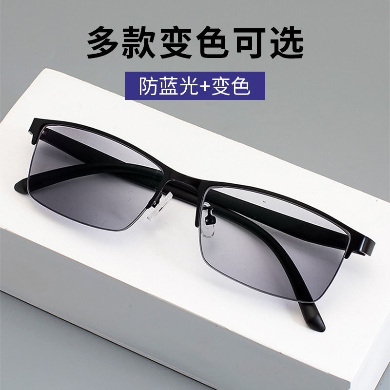 半框变色自动感光防蓝光商务工作近视镜度数可配丹阳男款近视眼镜