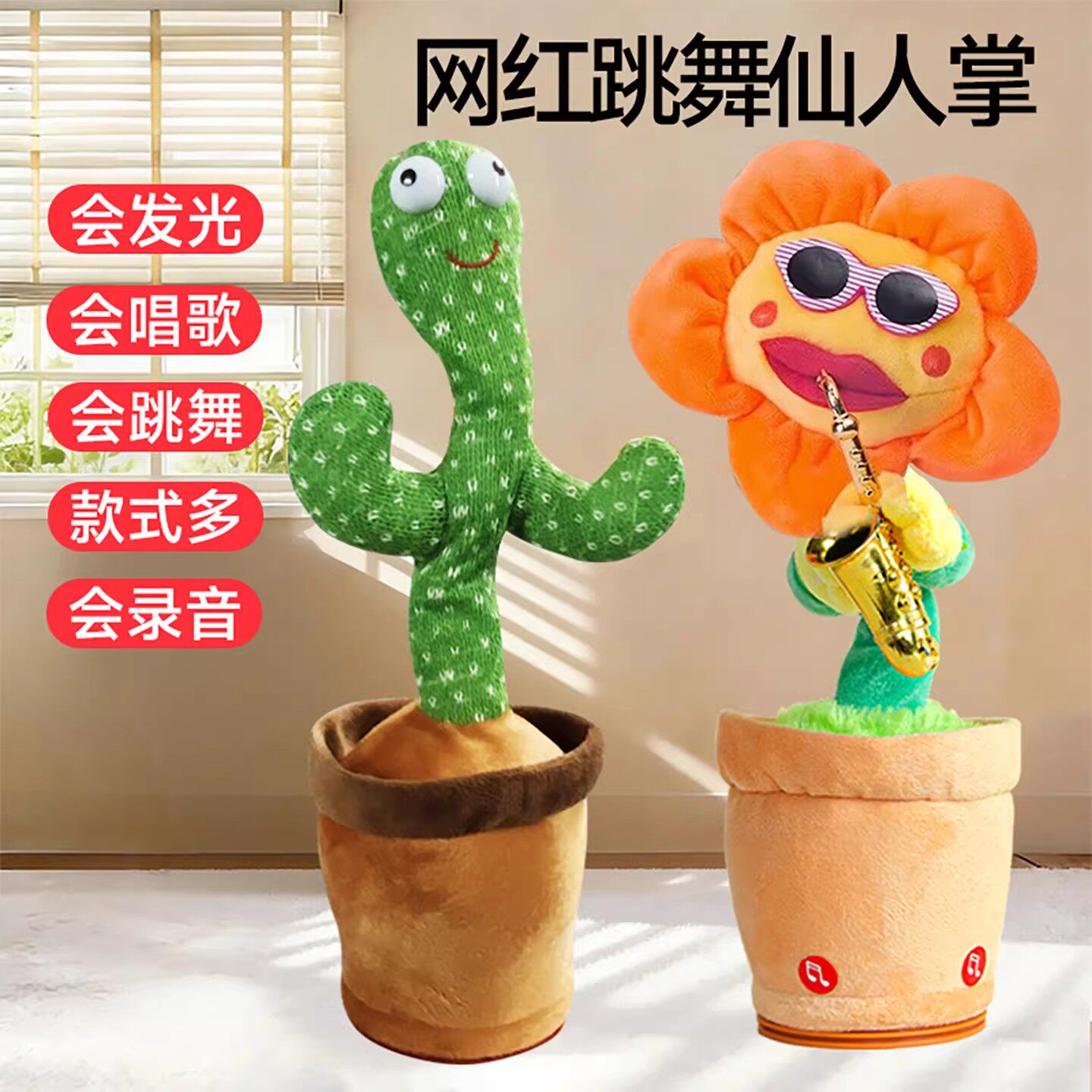 会学说话唱歌跳舞的仙人掌电动宝宝训练抬头练习婴儿玩具儿童礼物