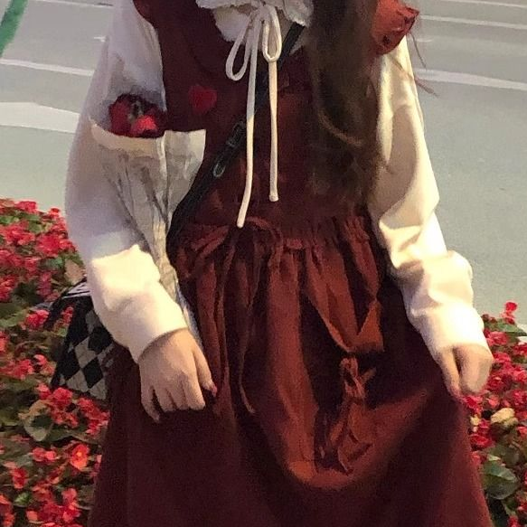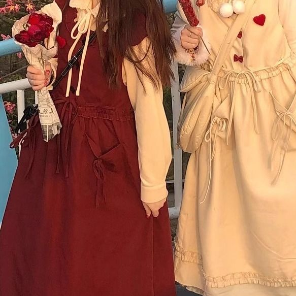 公主罗曼史 复古甜美可爱小个子蝴蝶结背带裙+花边蝴蝶结衬衫套装