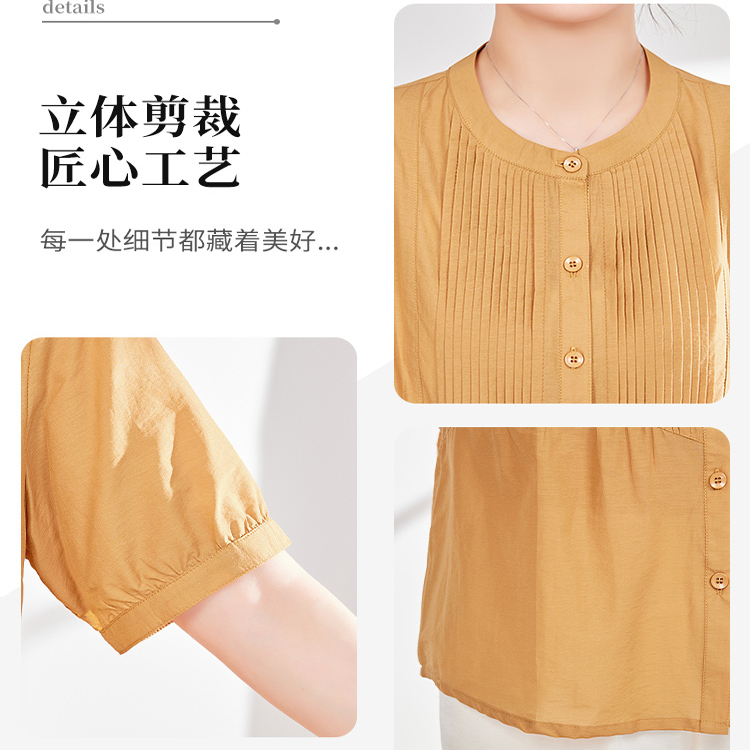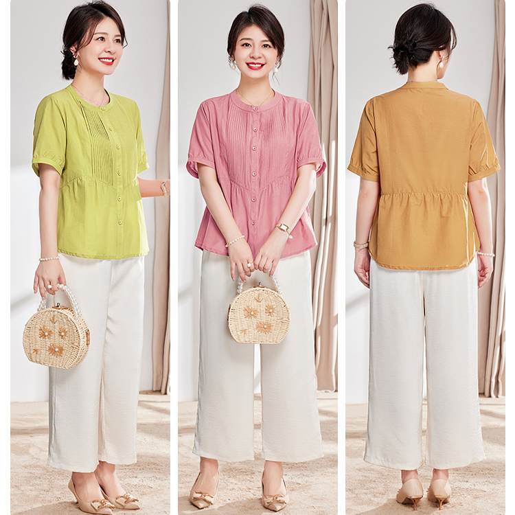 中年妈妈夏装棉麻套装洋气2025新款中老年小衫女夏季大码遮肚衬衫